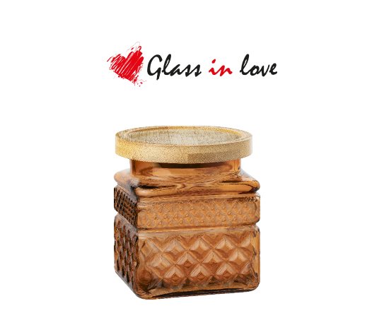Bambu Kapaklı Renkli Gravürlü Cam Kavanoz