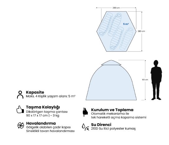 ÇİFT KATMANLI OTOMATİK ÇADIR 3-4 KİŞİLİK