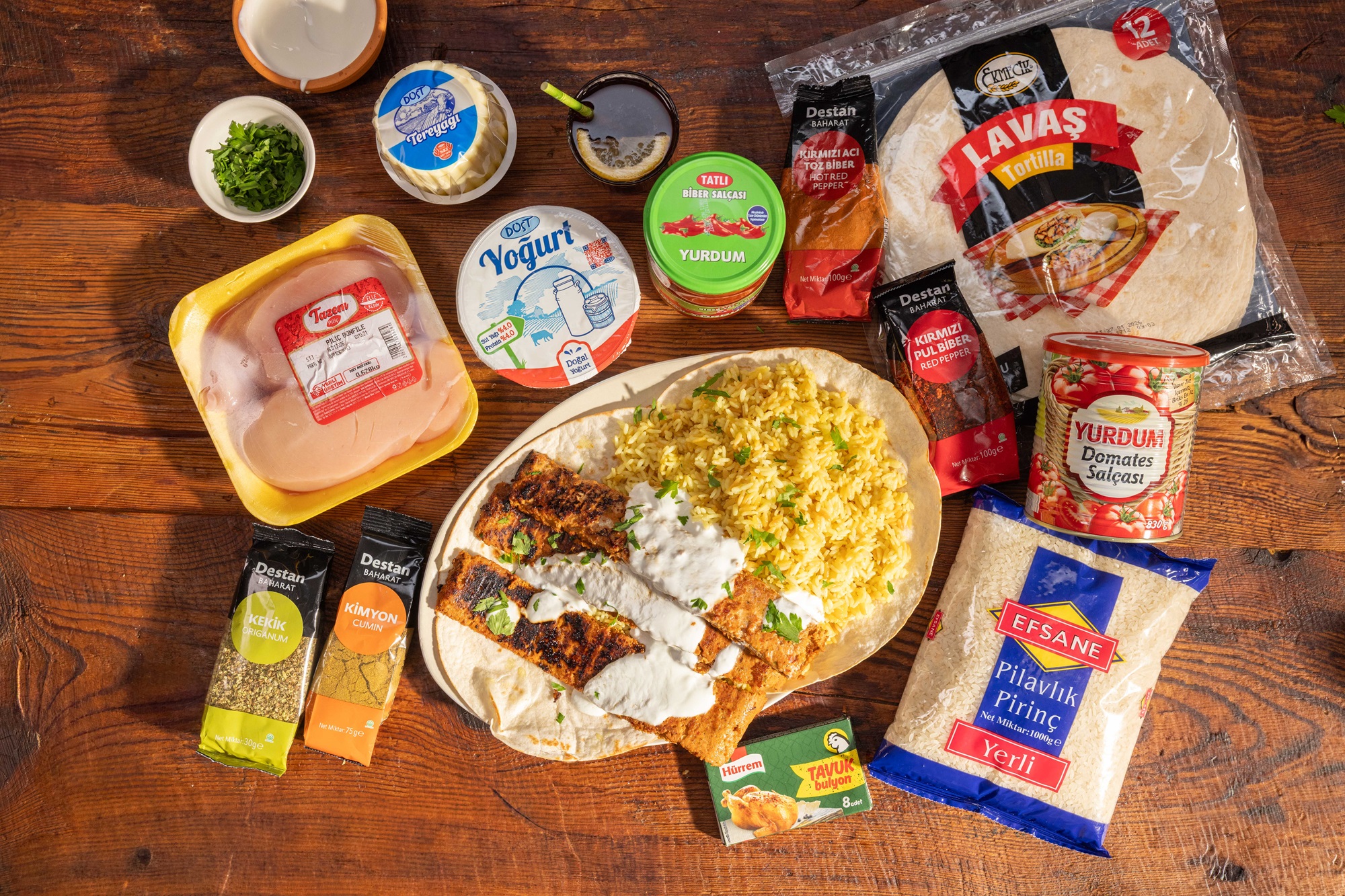 lavaşları koyun. Pilavları tabağa aktarın ve yanına tavukları koyun. Dilerseniz
